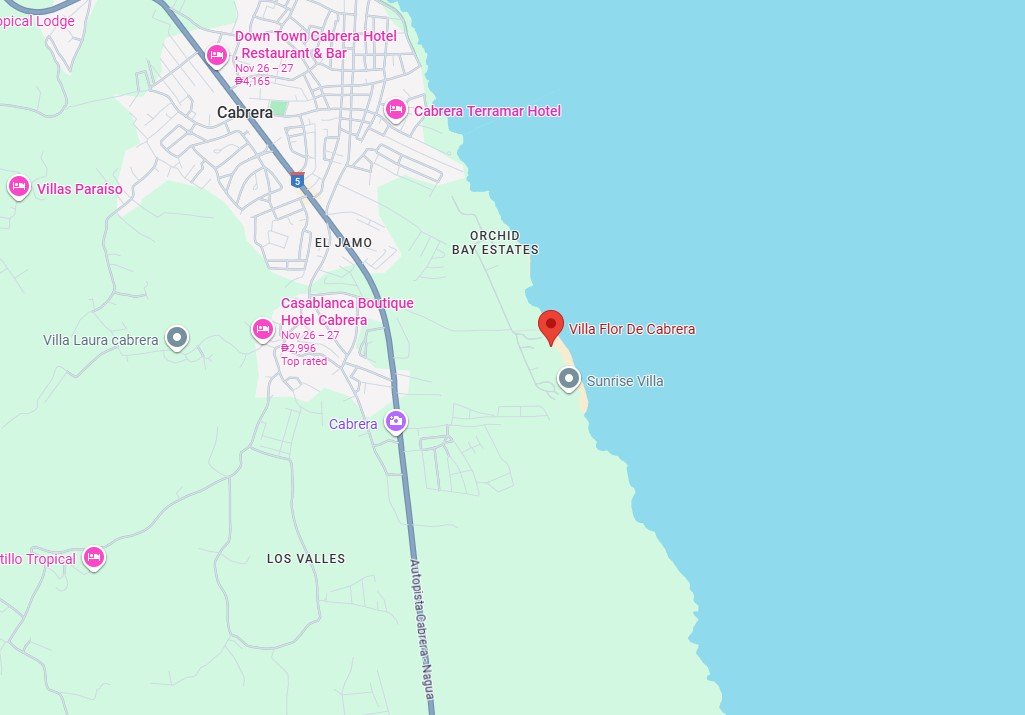 Small town (Cabrera) and 45-minute drive to the closest airport (e.g., POP or AZS).
